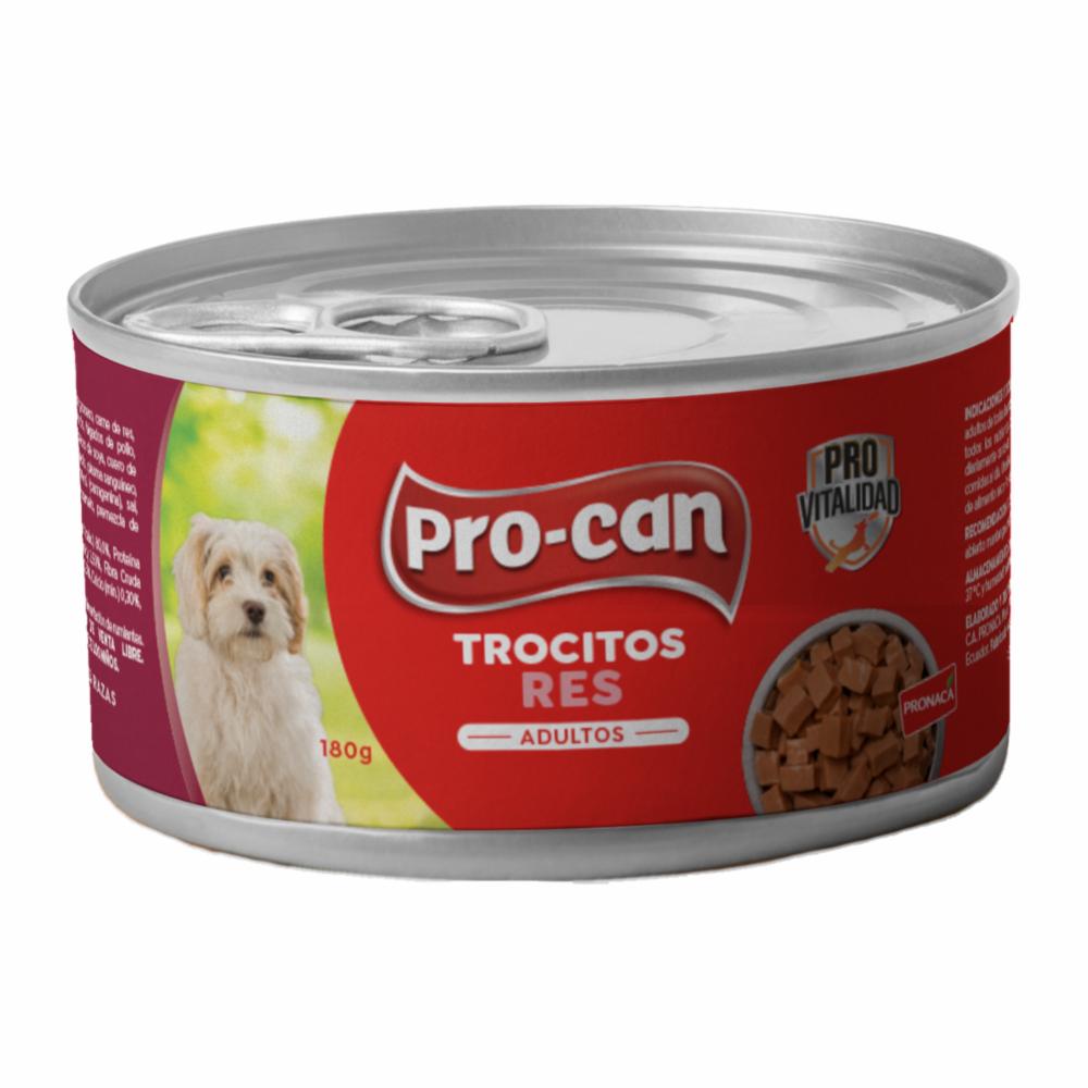 Alimento Húmedo Para Perros Adultos Sabor A Res PRO-CAN TROCITOS 180 G
