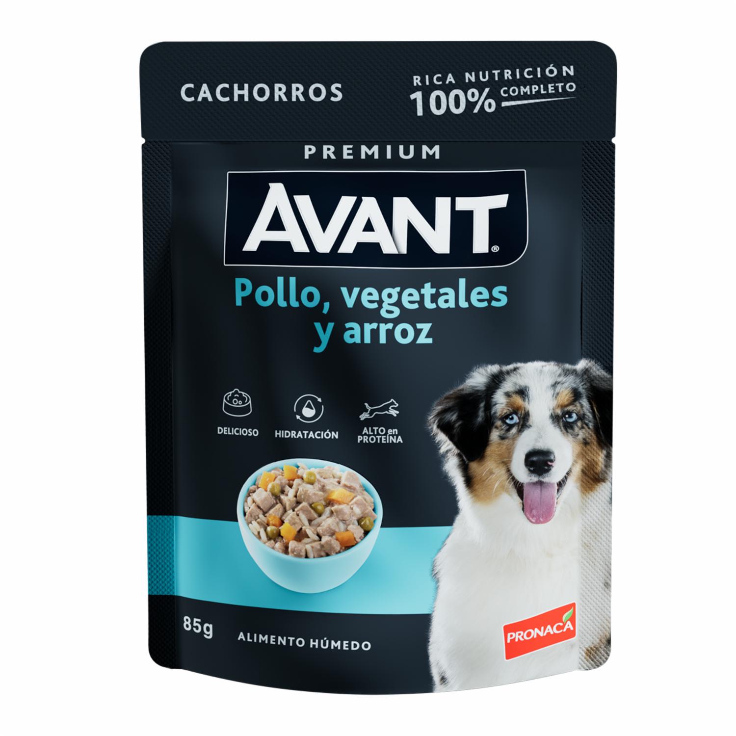 Alimento Húmedo Para Perros Cachorros Sabor A Pollo Vegetales Y Arroz En Pouch AVANT 85 G